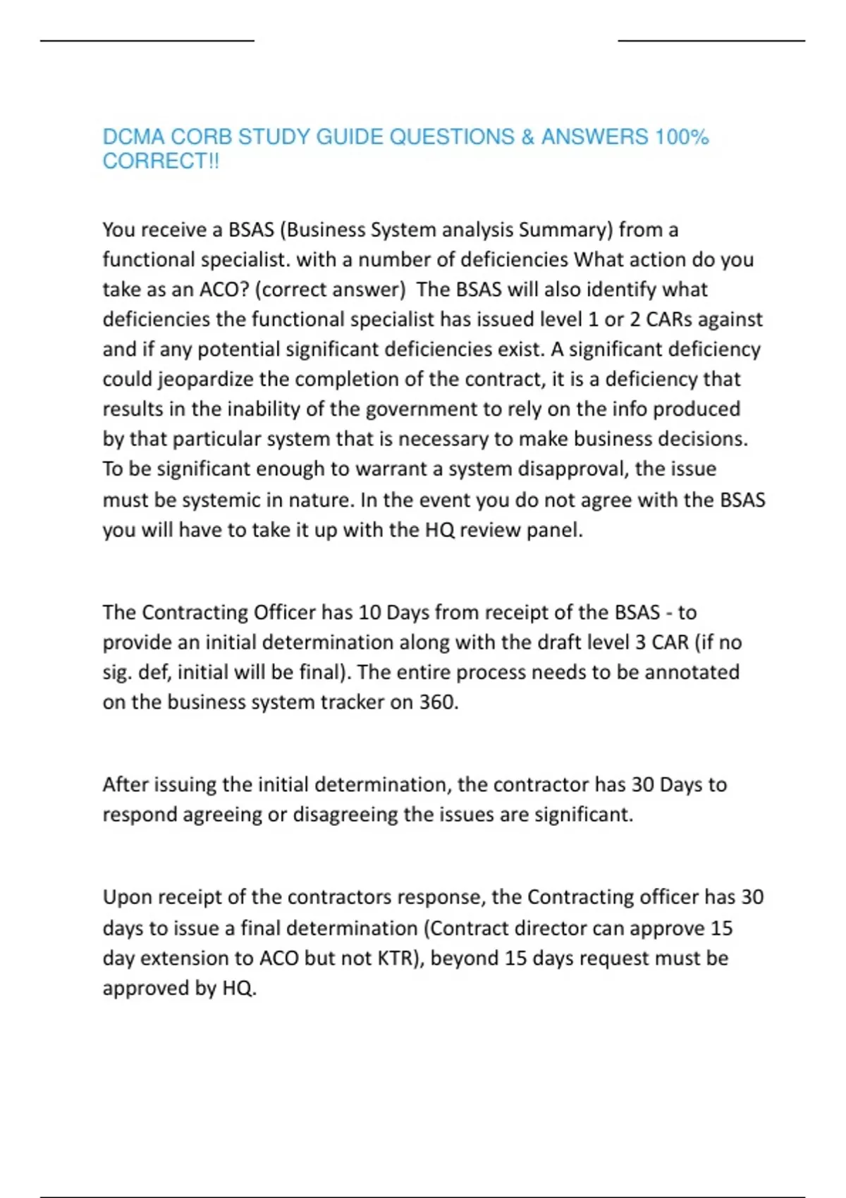 DCMA CORB STUDY GUIDE QUESTIONS & ANSWERS 100% CORRECT!!