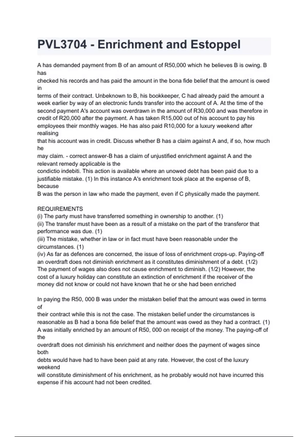 justifiable mistake. (1) In this instance A's enrichment took place at the expense of B,