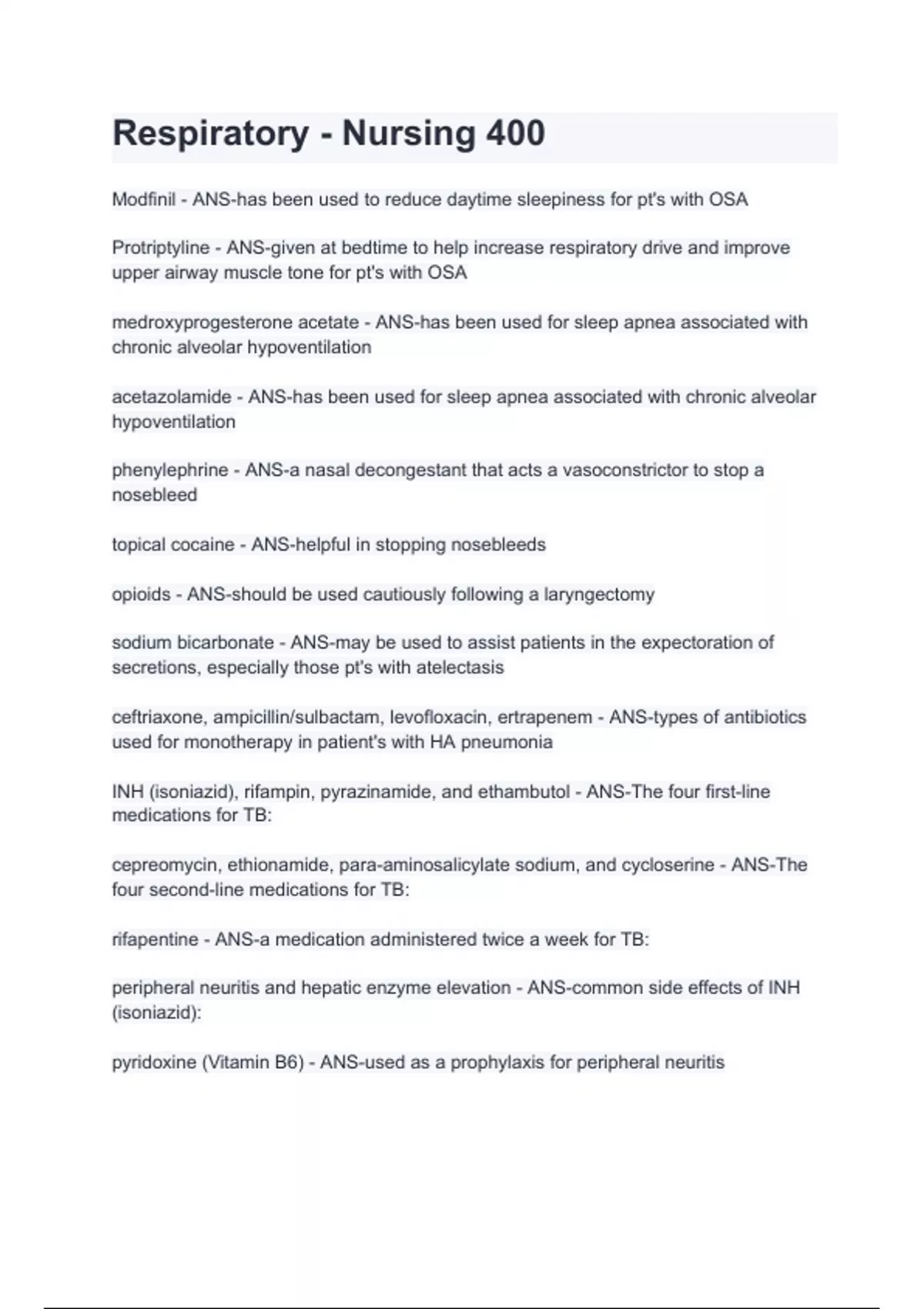 Respiratory - Nursing 400