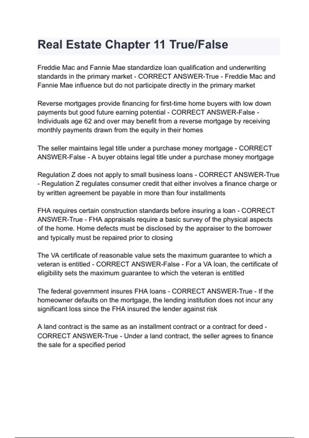Real Estate Chapter 11 True/False