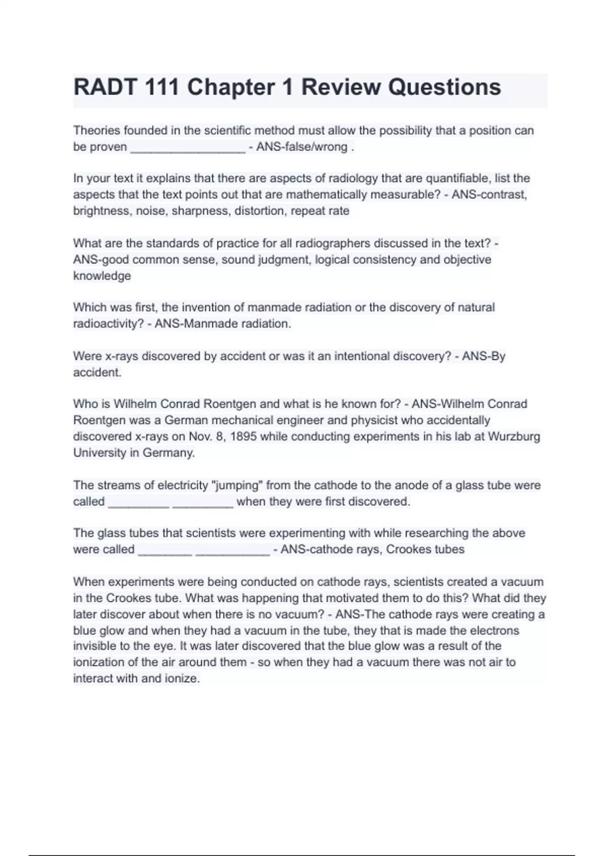 RADT 111 Chapter 1 Review Questions