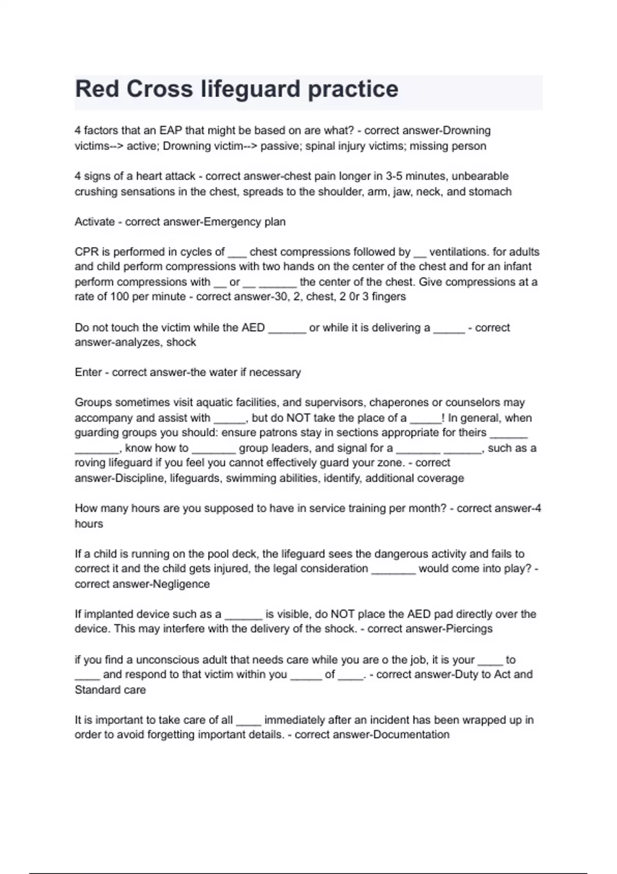 4 factors that an EAP that might be based on are what? - correct answer-Drowning