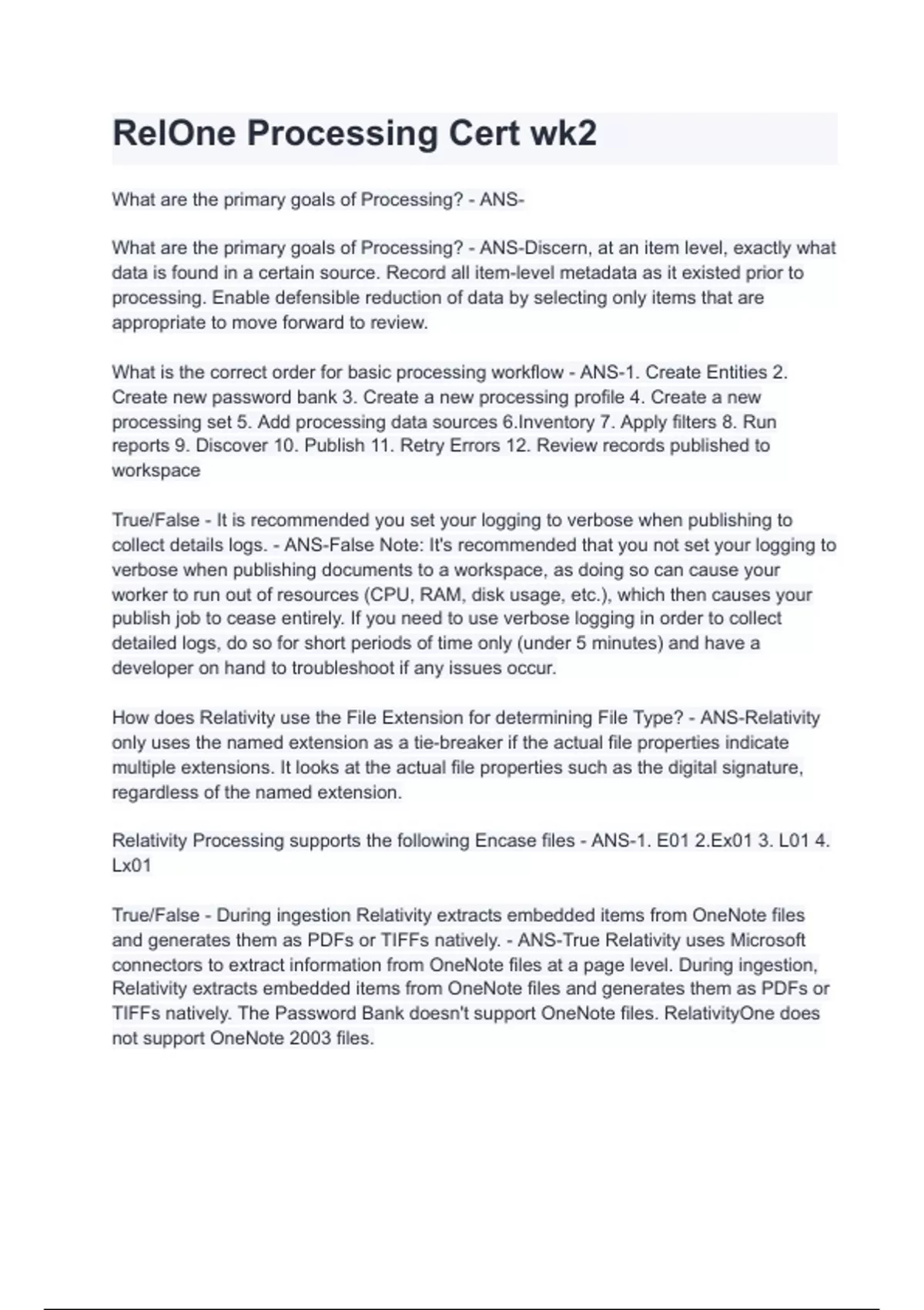 RelOne Processing Cert wk2