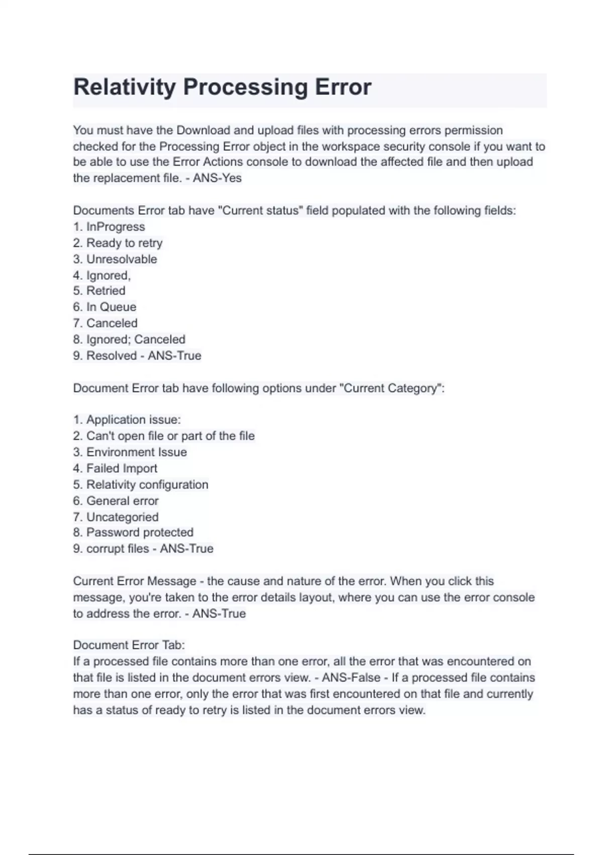 that file is listed in the document errors view. - ANS-False - If a processed file contains
