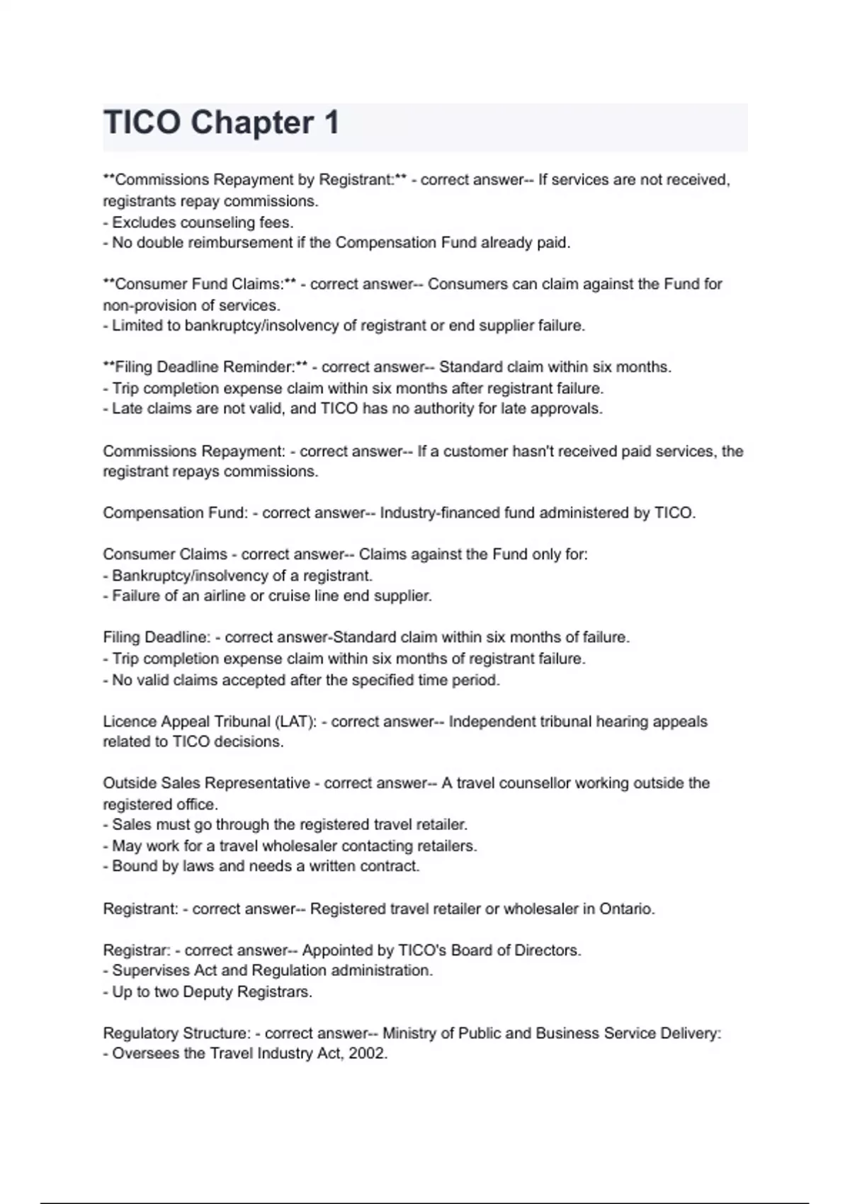 Compensation Fund: - correct answer-- Industry-financed fund administered by TICO.