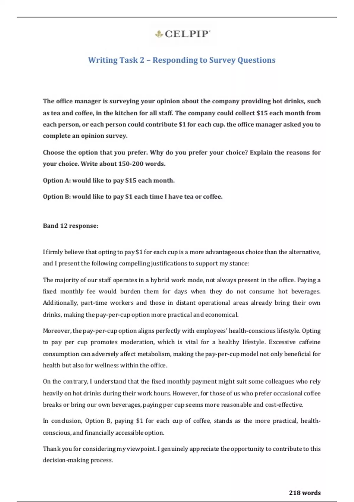 Writing Task 2 – Responding to Survey Questions