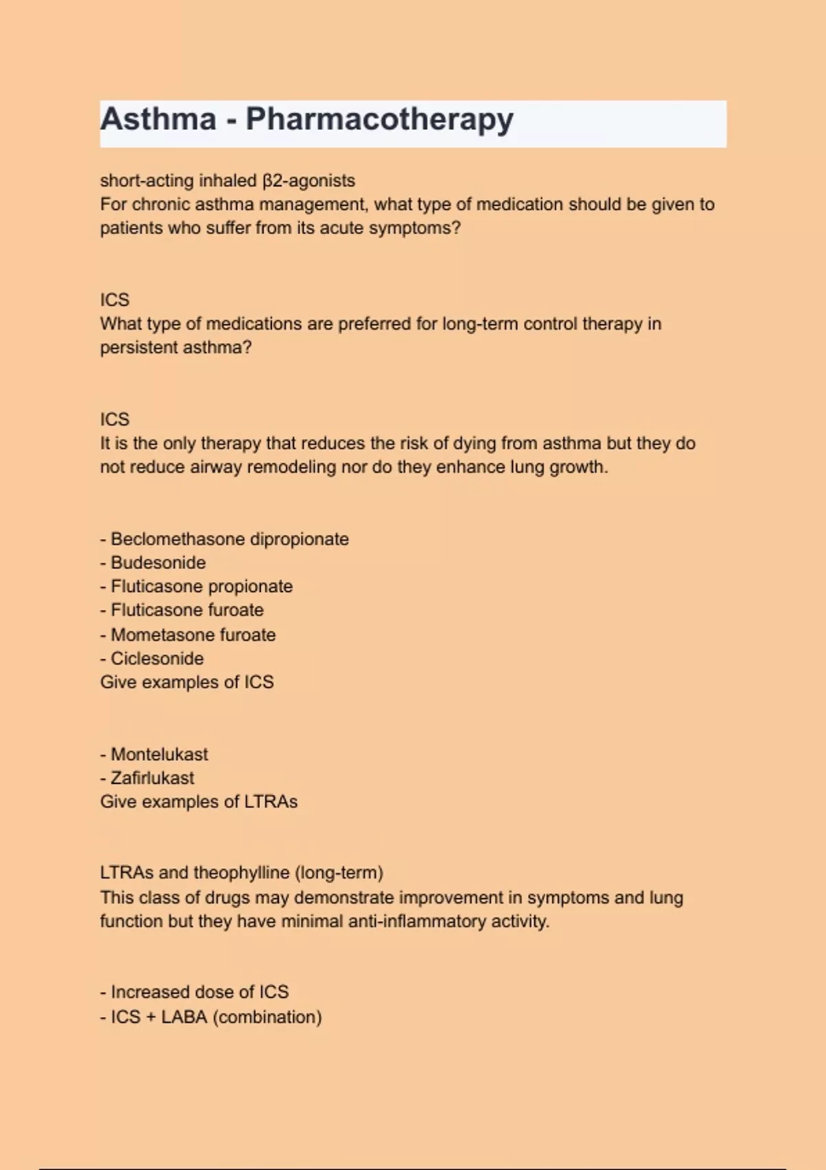 Asthma - Pharmacotherapy