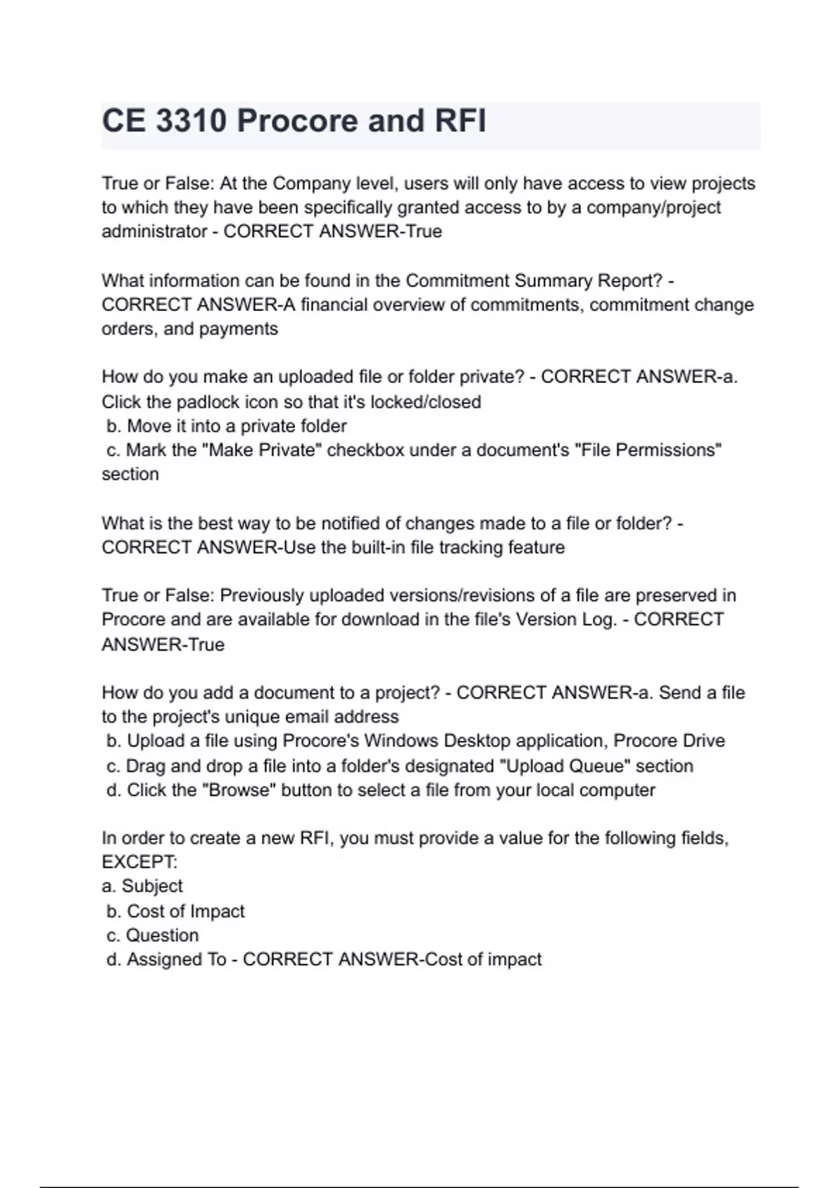 CE 3310 Procore and RFI