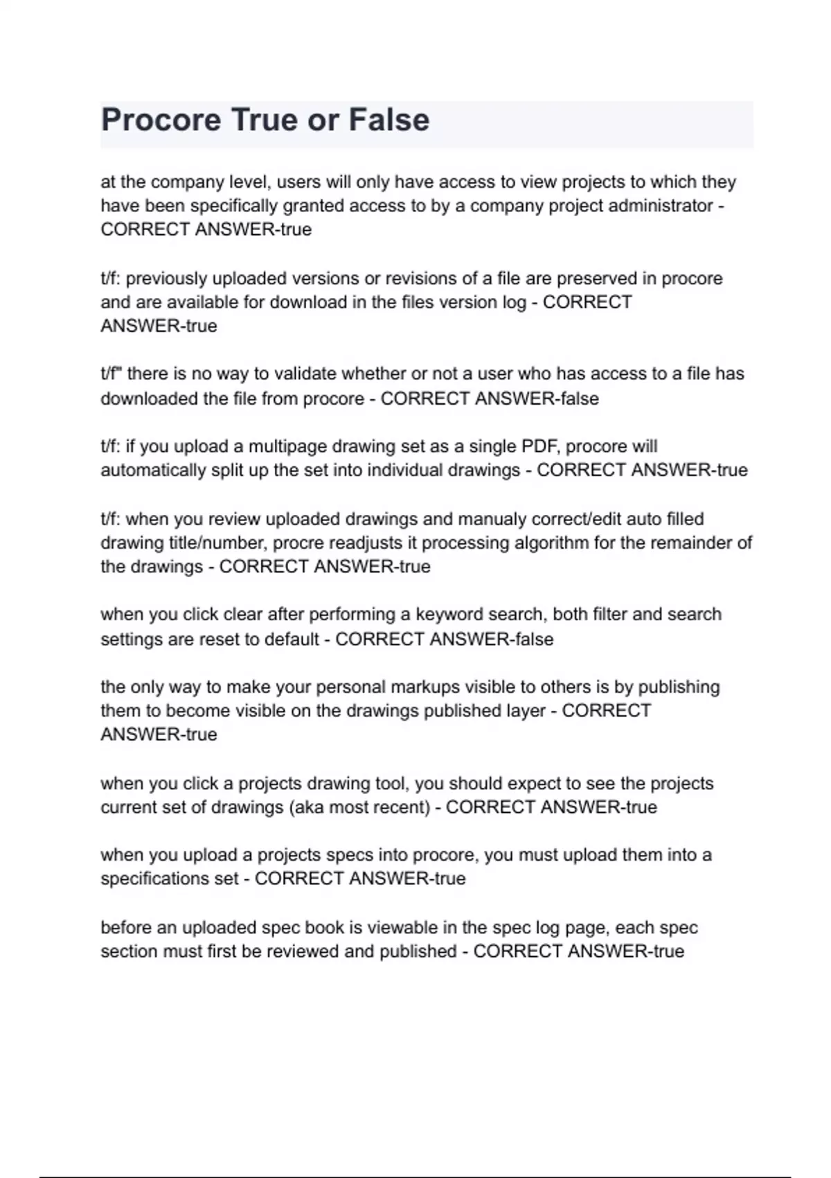 Procore True or False