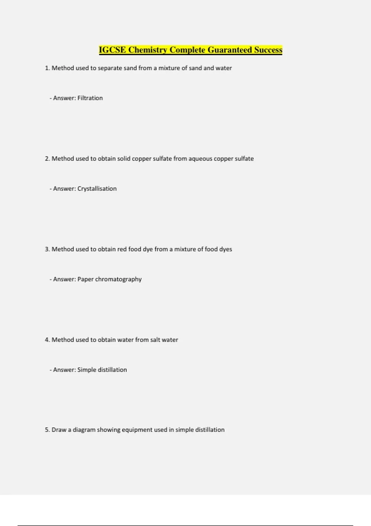 5. Draw a diagram showing equipment used in simple distillation