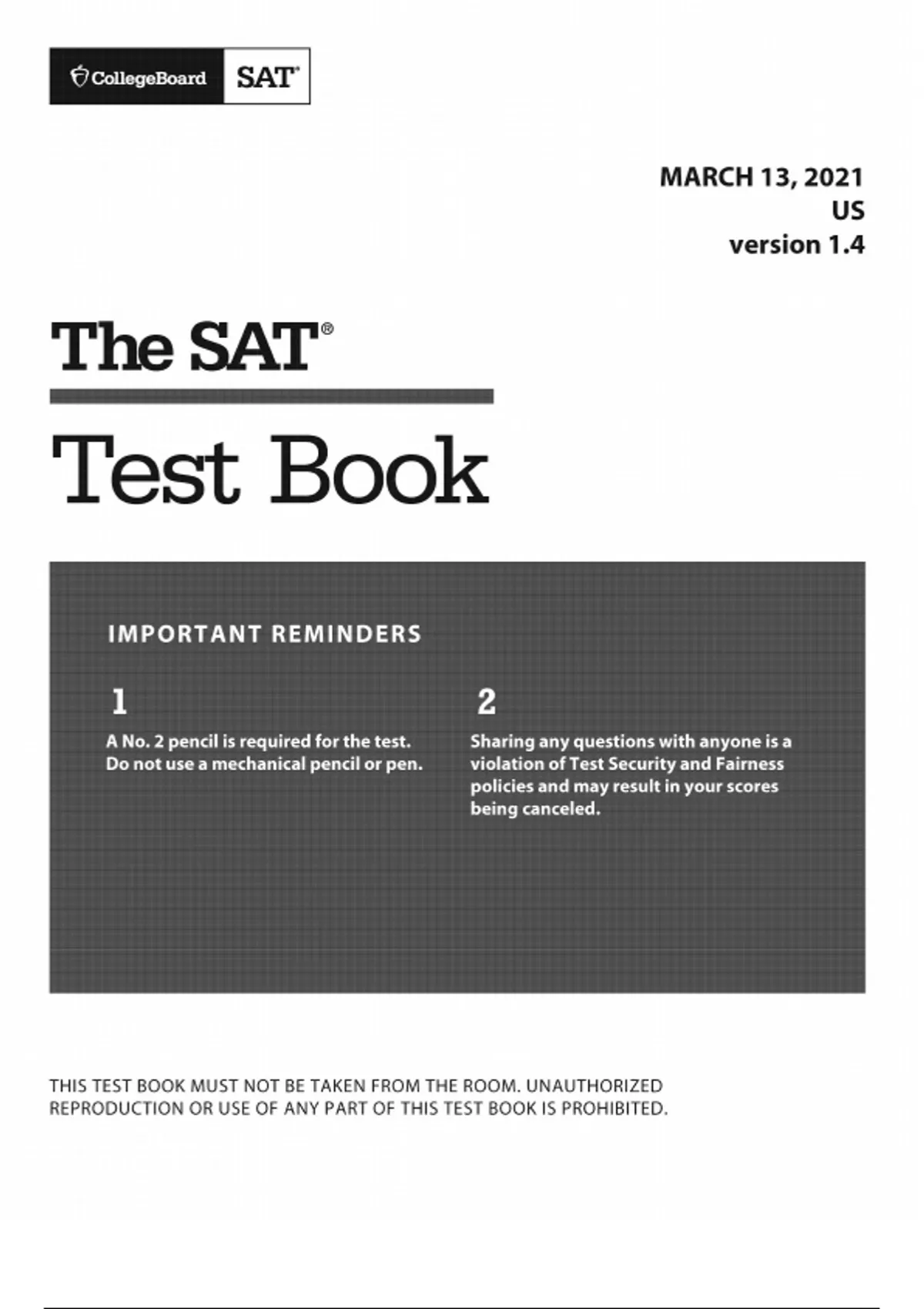 Official March 13, 2021, v1.4 US SAT Score Latest Version with Complete Solution