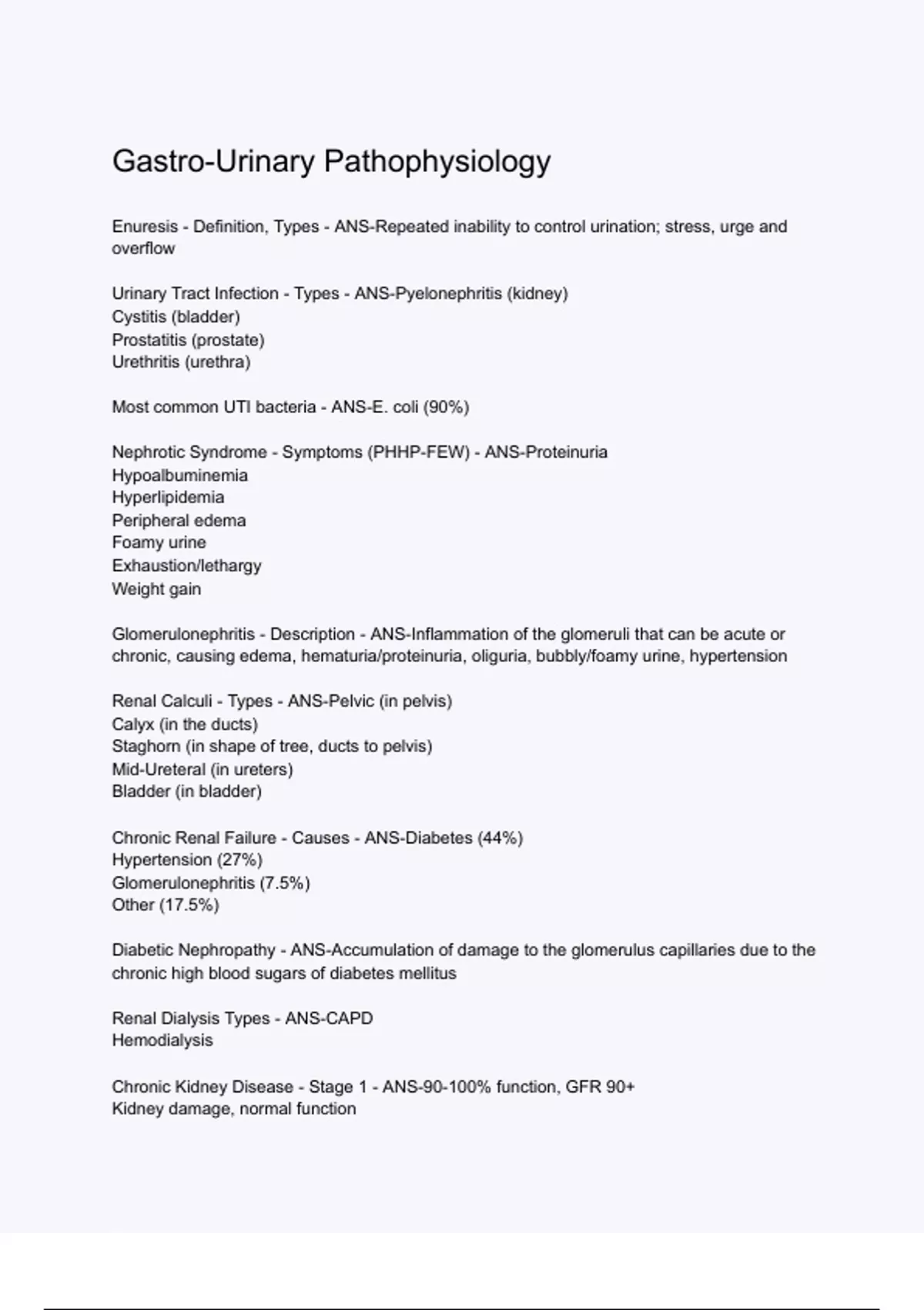 Gastro-Urinary Pathophysiology