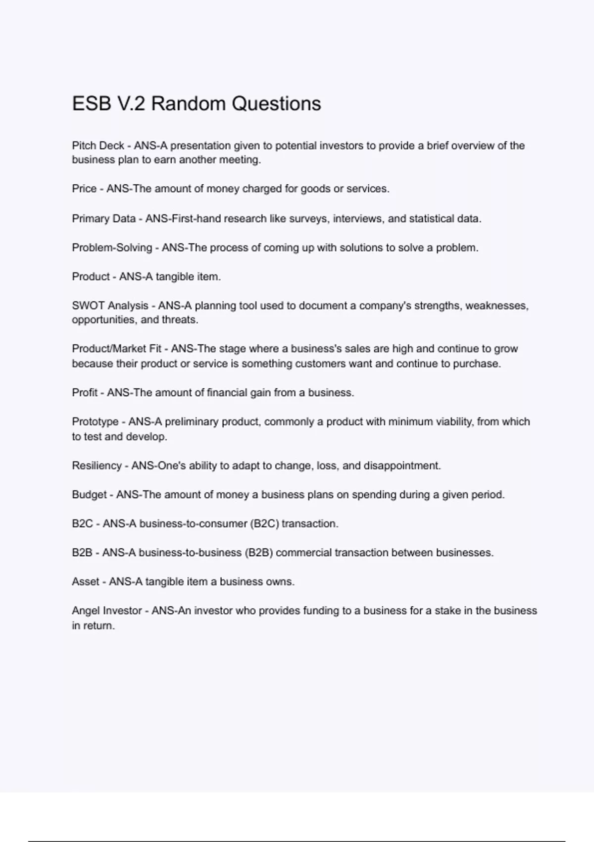 ESB V.2 Random Questions