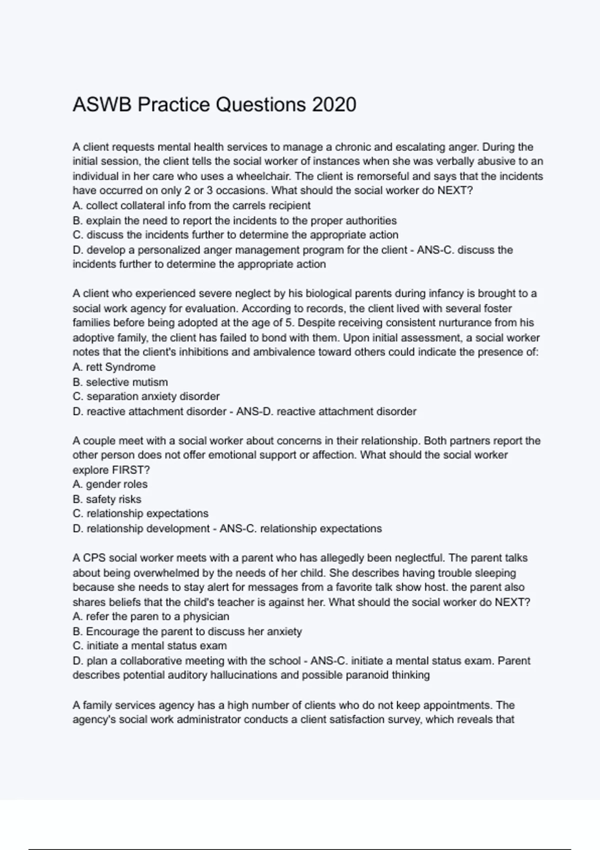 ASWB Practice Questions 2020.