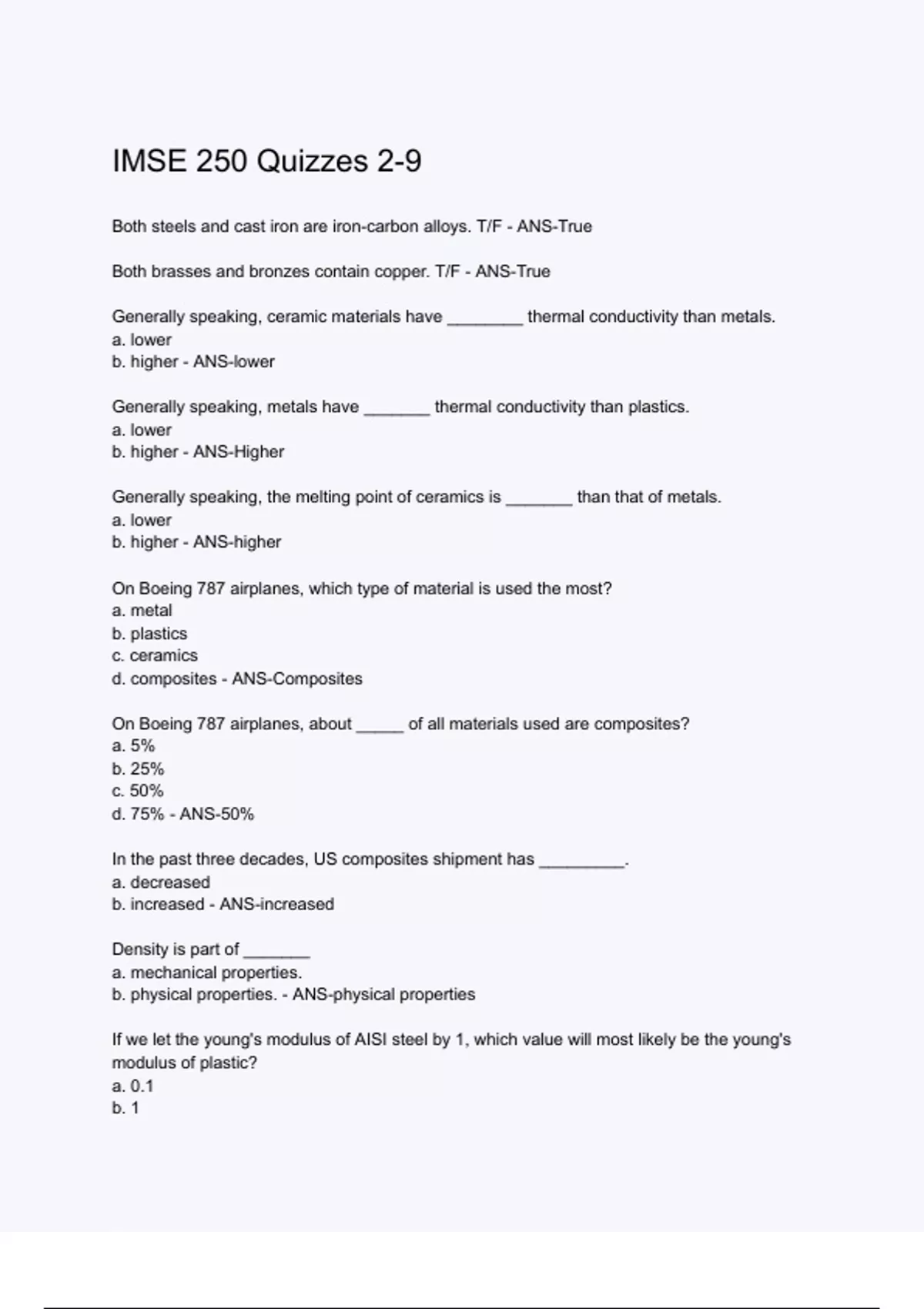 IMSE 250 Quizzes 2-9