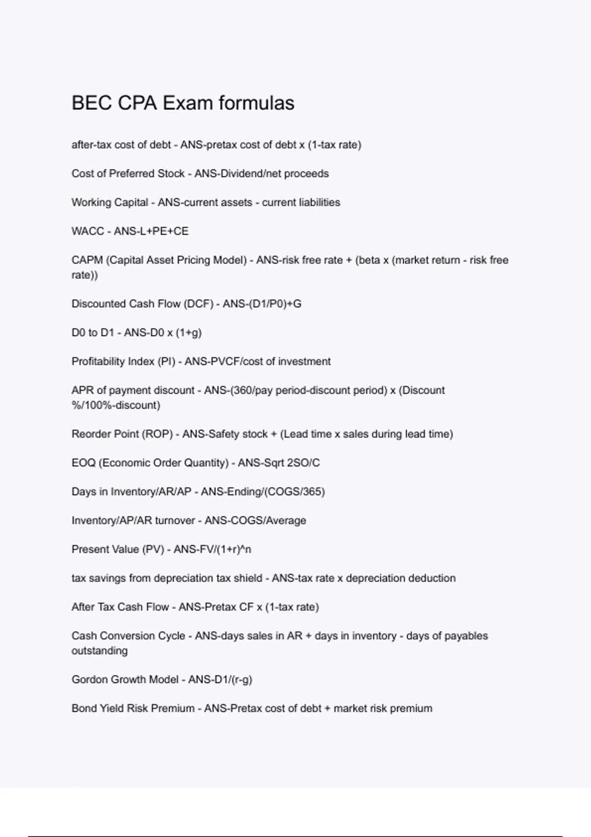 BEC CPA Exam formulas (1)