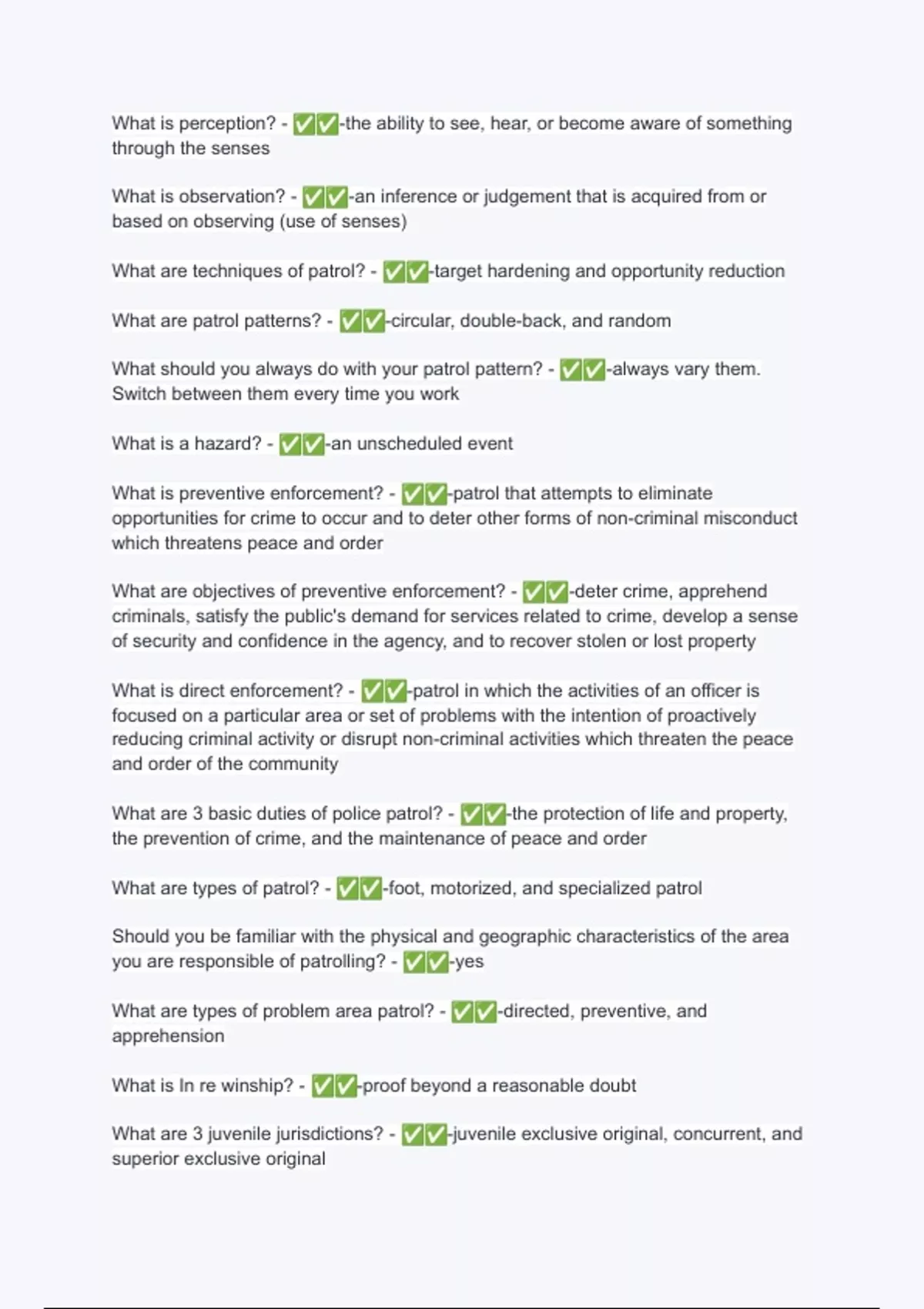 What are 3 basic duties of police patrol? - ✅✅ -the protection of life and property,