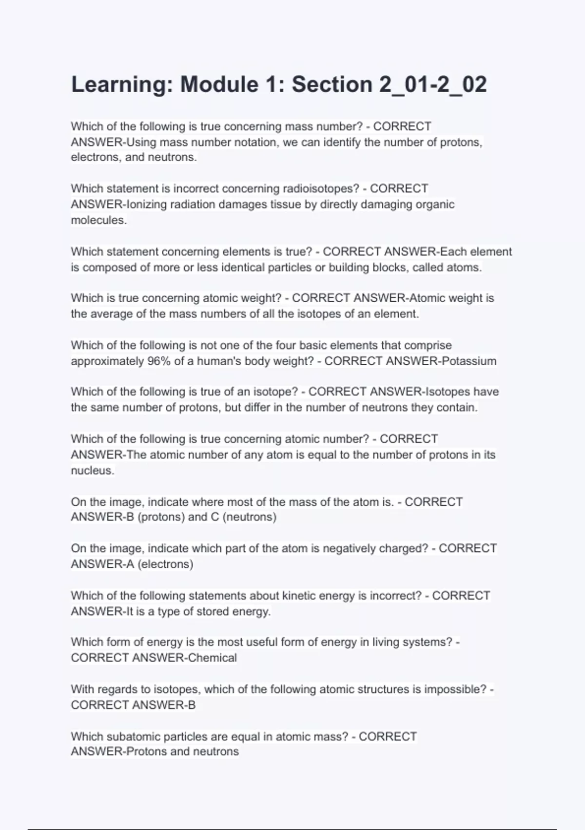 Which is true concerning atomic weight? - CORRECT ANSWER-Atomic weight is