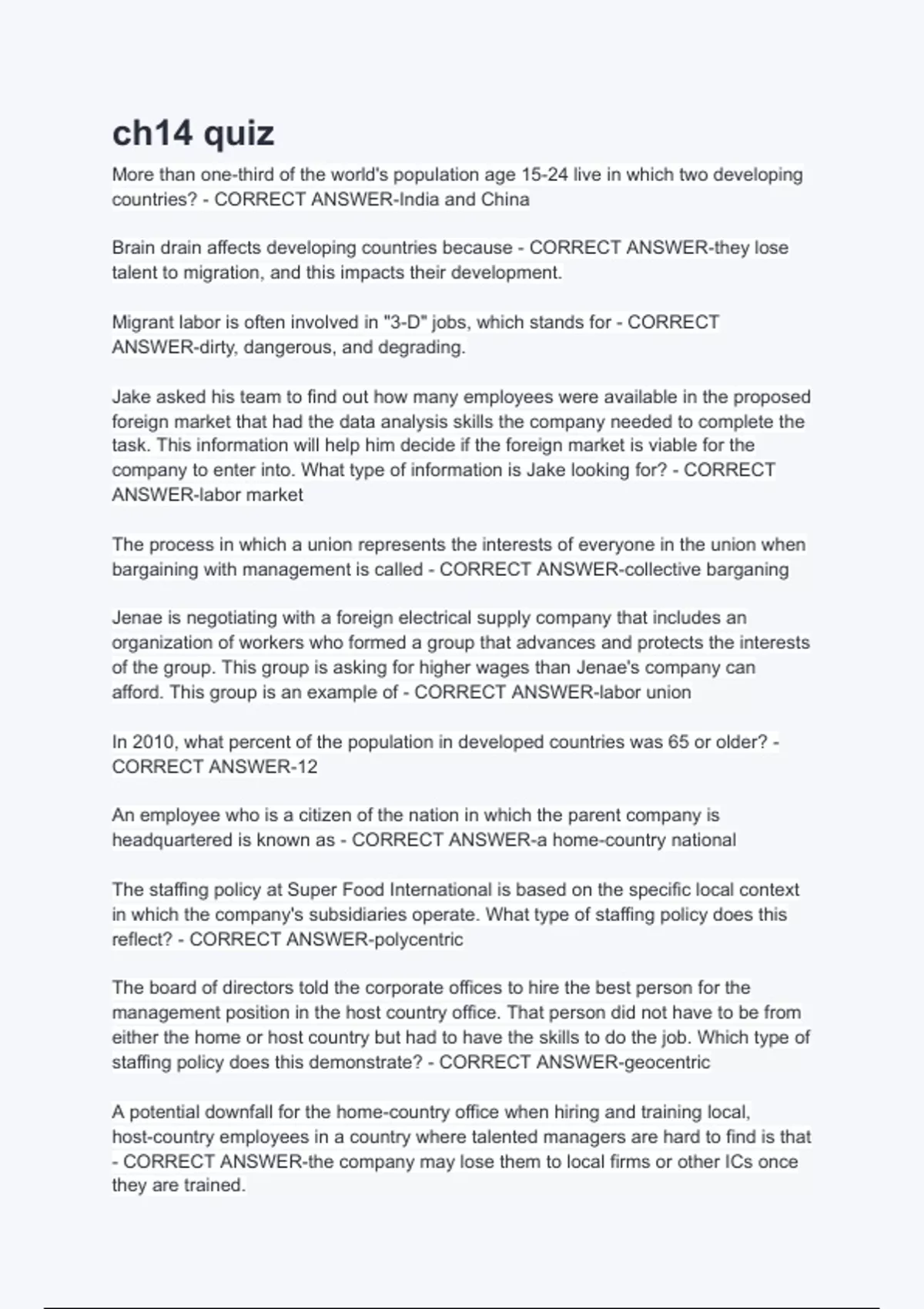 staffing policy does this demonstrate? - CORRECT ANSWER-geocentric