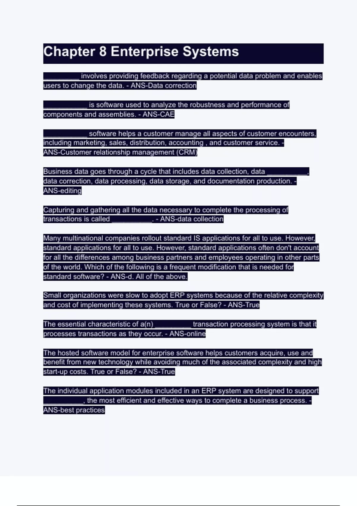 chapter 8 enterprise systems questions answers w