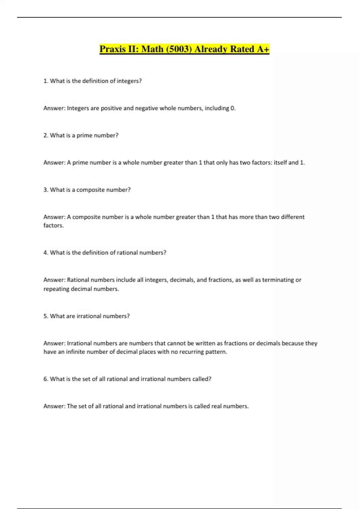 6. What is the set of all rational and irrational numbers called?