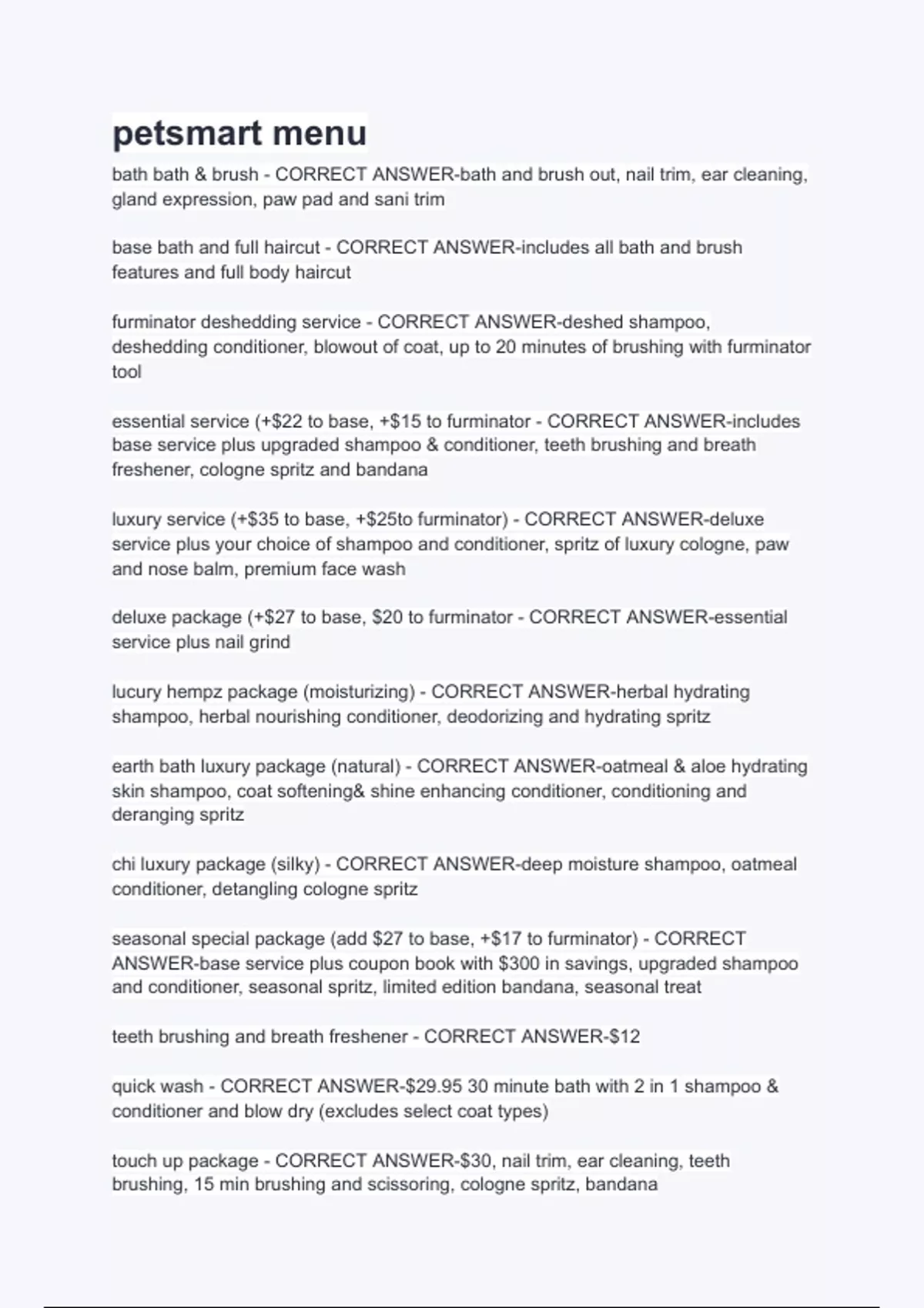 essential service (+$22 to base, +$15 to furminator - CORRECT ANSWER-includes