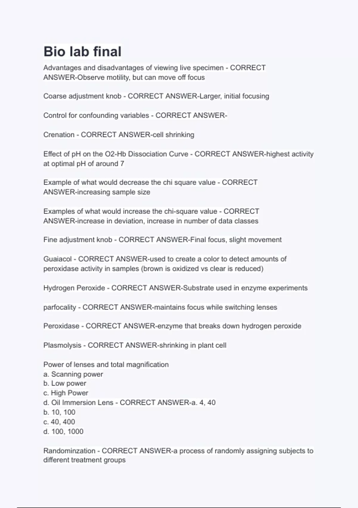 Peroxidase - CORRECT ANSWER-enzyme that breaks down hydrogen peroxide