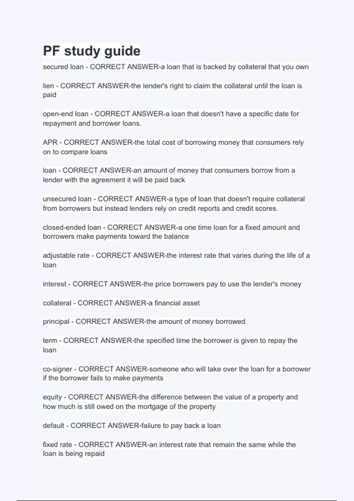 loan - CORRECT ANSWER-an amount of money that consumers borrow from a