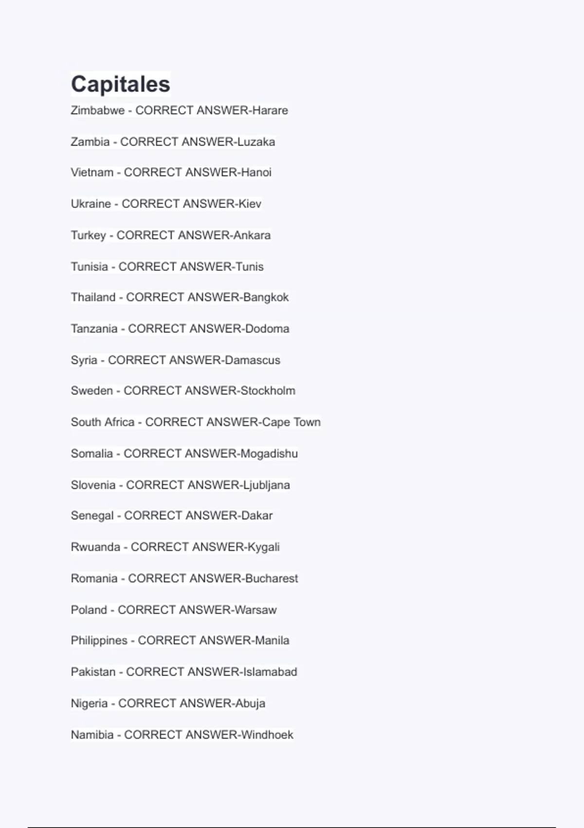 Exam of 3 pages for the course petsmart menu at petsmart menu (Capitales (1).)