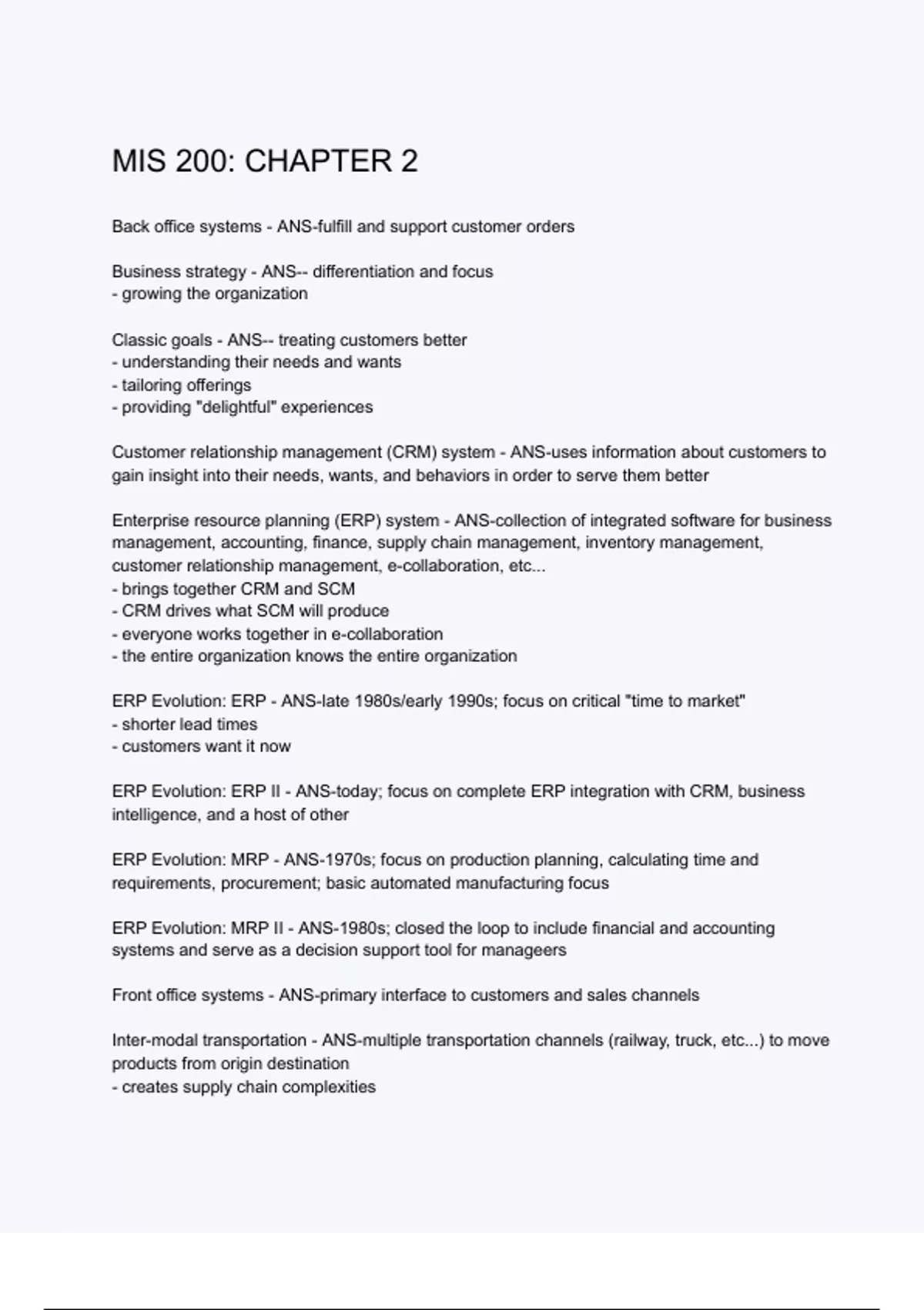 ERP Evolution: MRP - ANS-1970s; focus on production planning, calculating time and