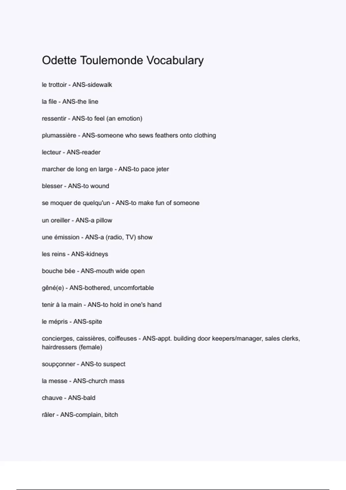 Odette Toulemonde Vocabulary