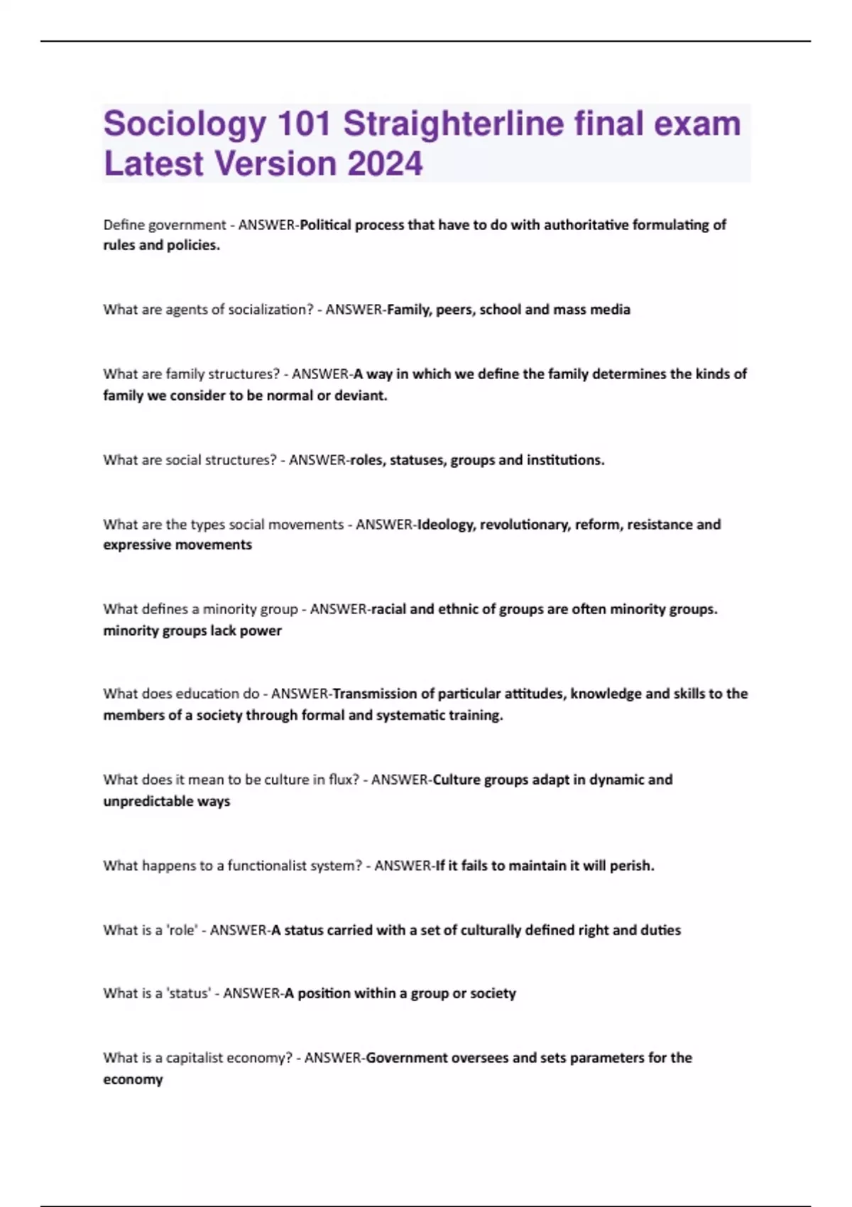 Sociology 101 Straighterline final exam Latest Version 2024