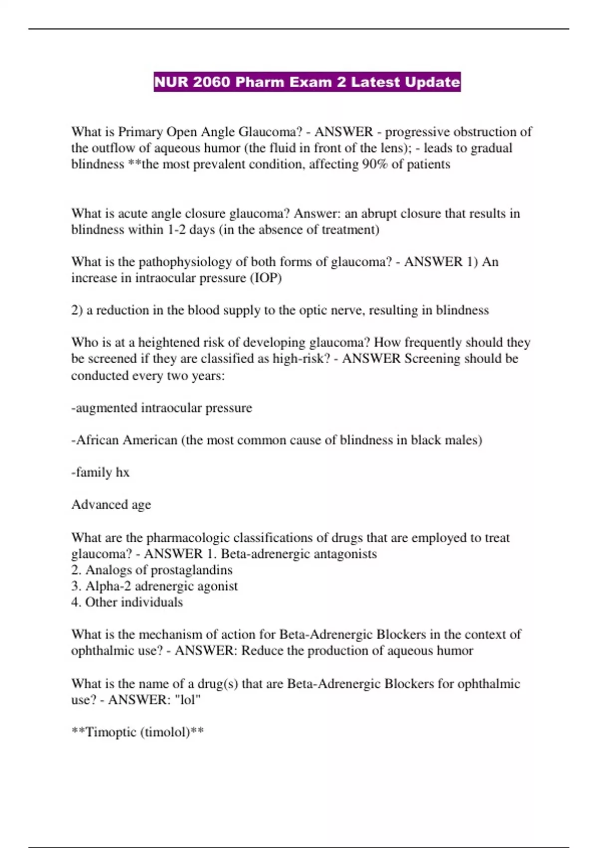 NUR 2060 Pharm Exam 2 Latest Update...