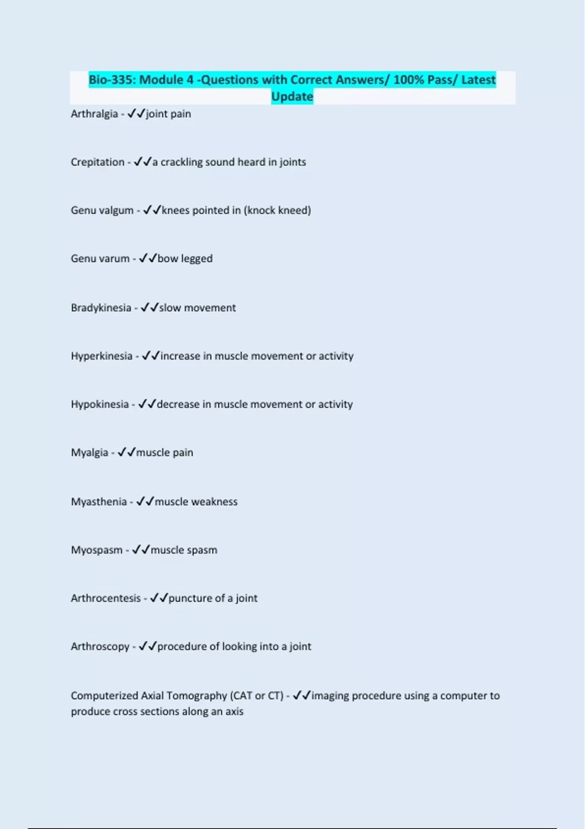 Bio-335: Module 4 -Questions with Correct Answers/ 100% Pass/ Latest Update