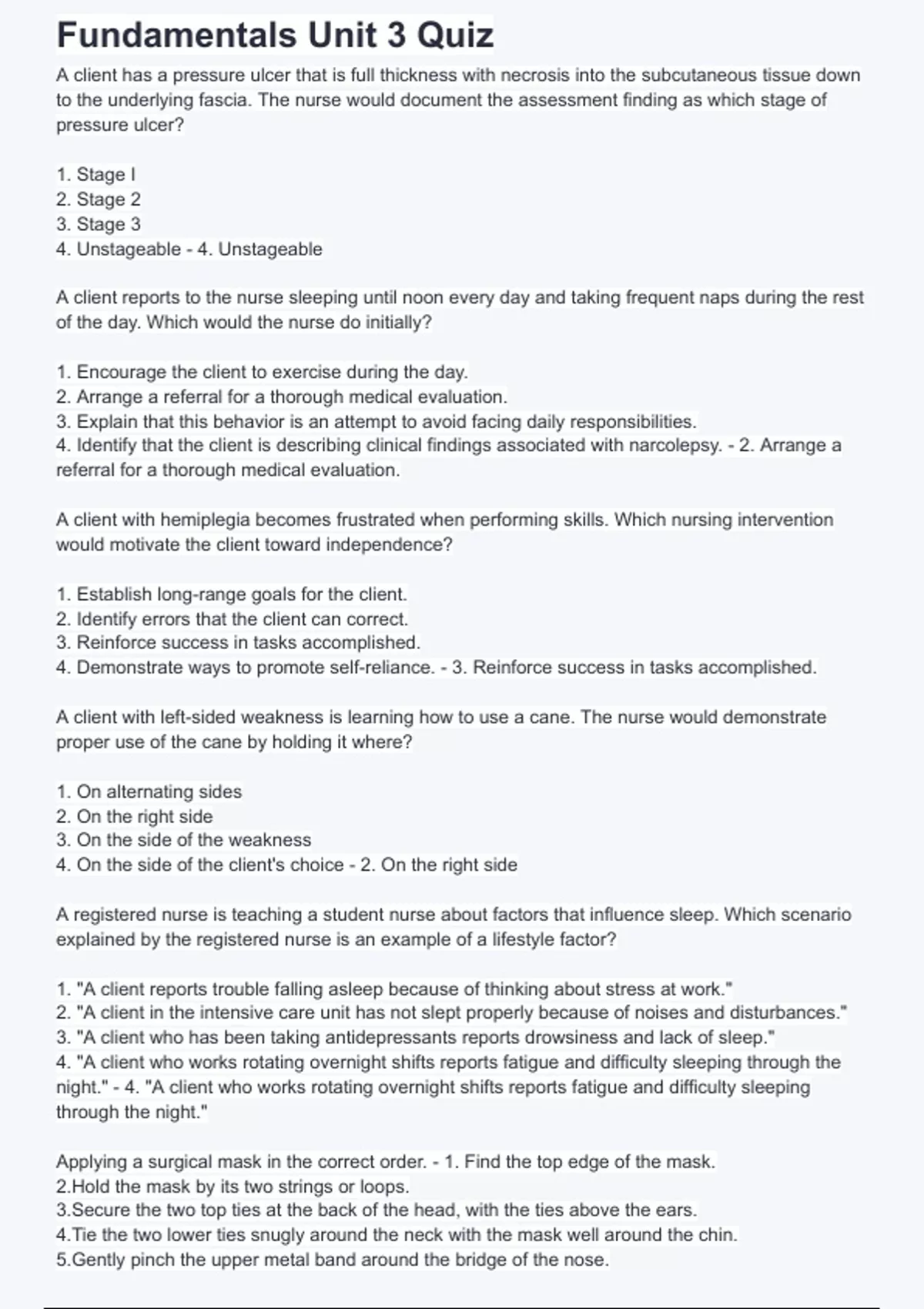 Fundamentals Unit 3 Quiz Questions With 100% Correct Answers complete solution