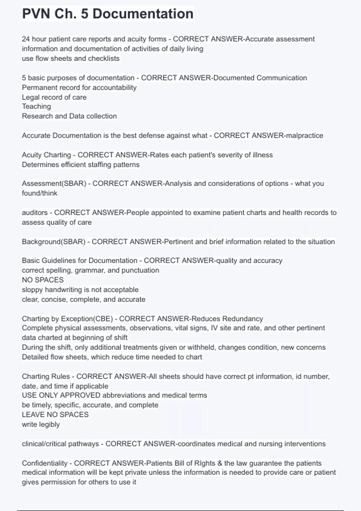 PVN Ch. 5 Documentation Complete Questions with 100% Correct Answers.
