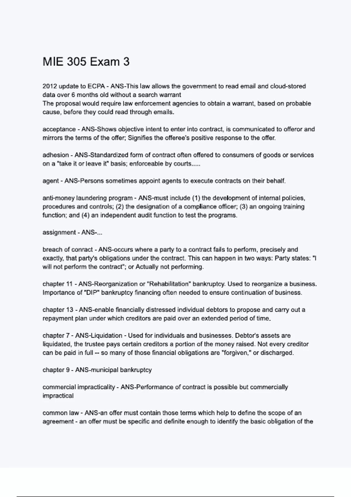 MIE 305 Exam 3.