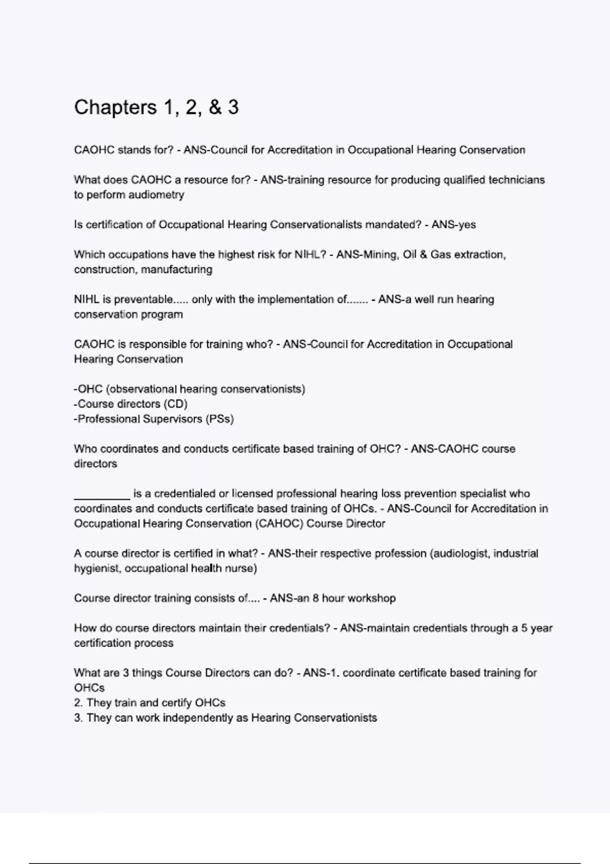 Exam of 6 pages for the course CAOHC Certification at CAOHC Certification (Chapters 1 2 3)