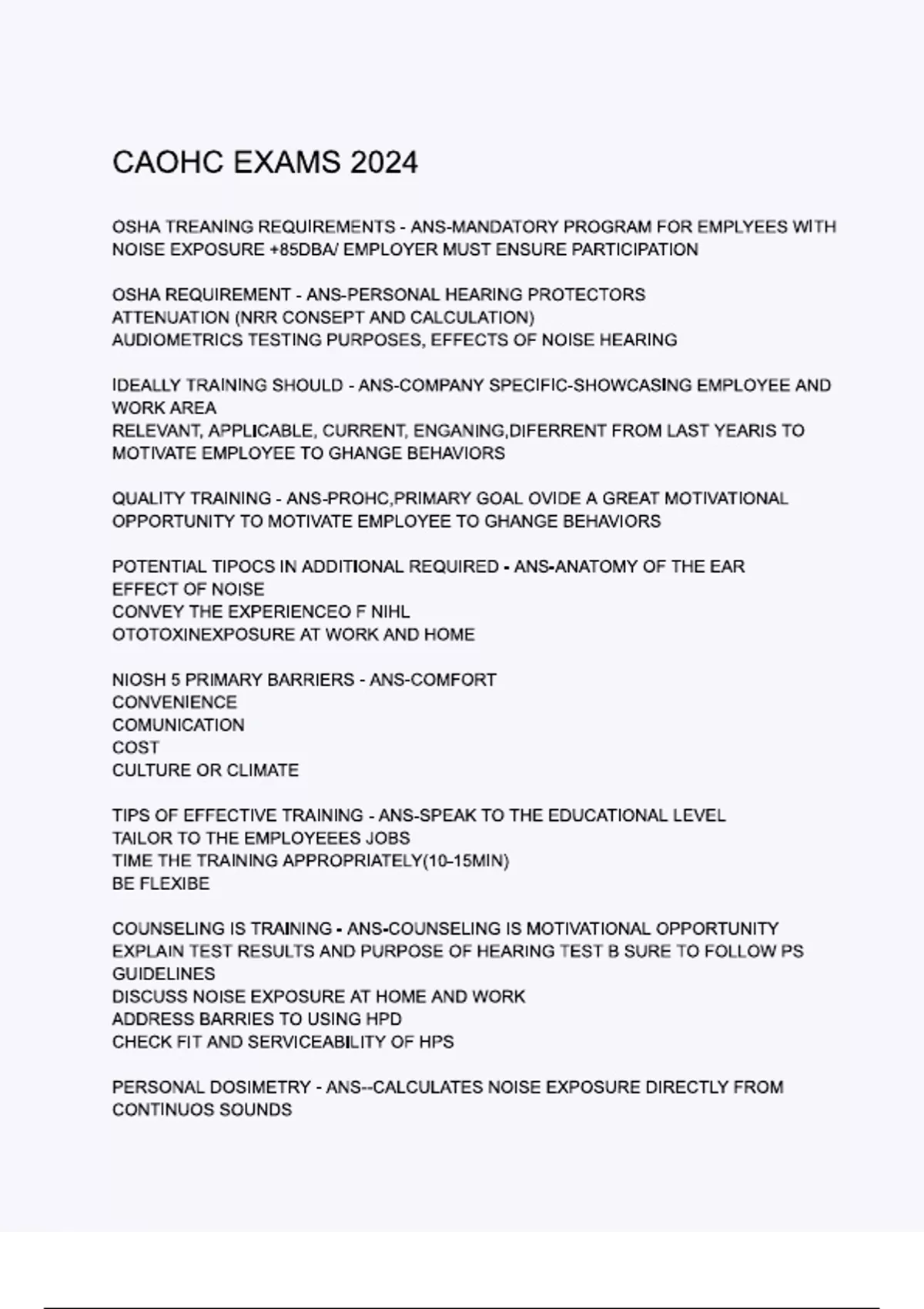 Exam of 10 pages for the course CAOHC Certification at CAOHC Certification (CAOHC EXAMS 2024)