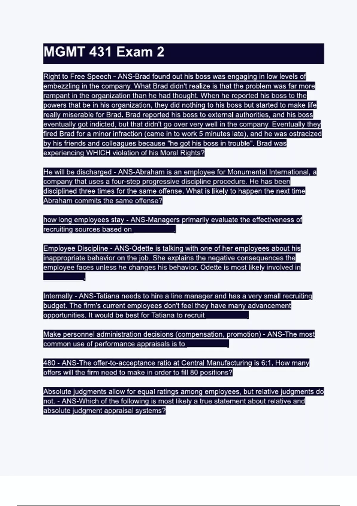 MGMT 431 Exam 2.