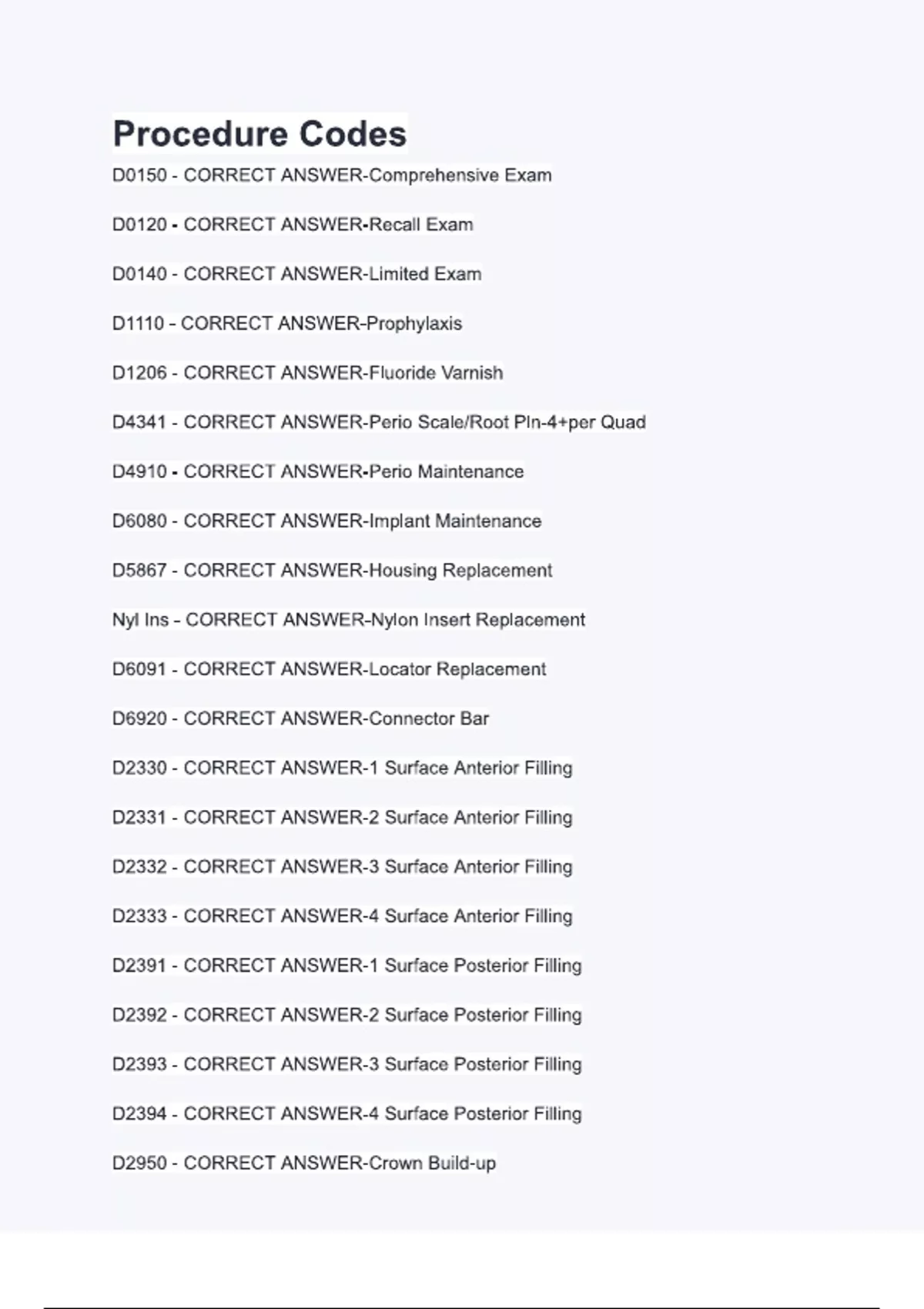 Procedure Codes