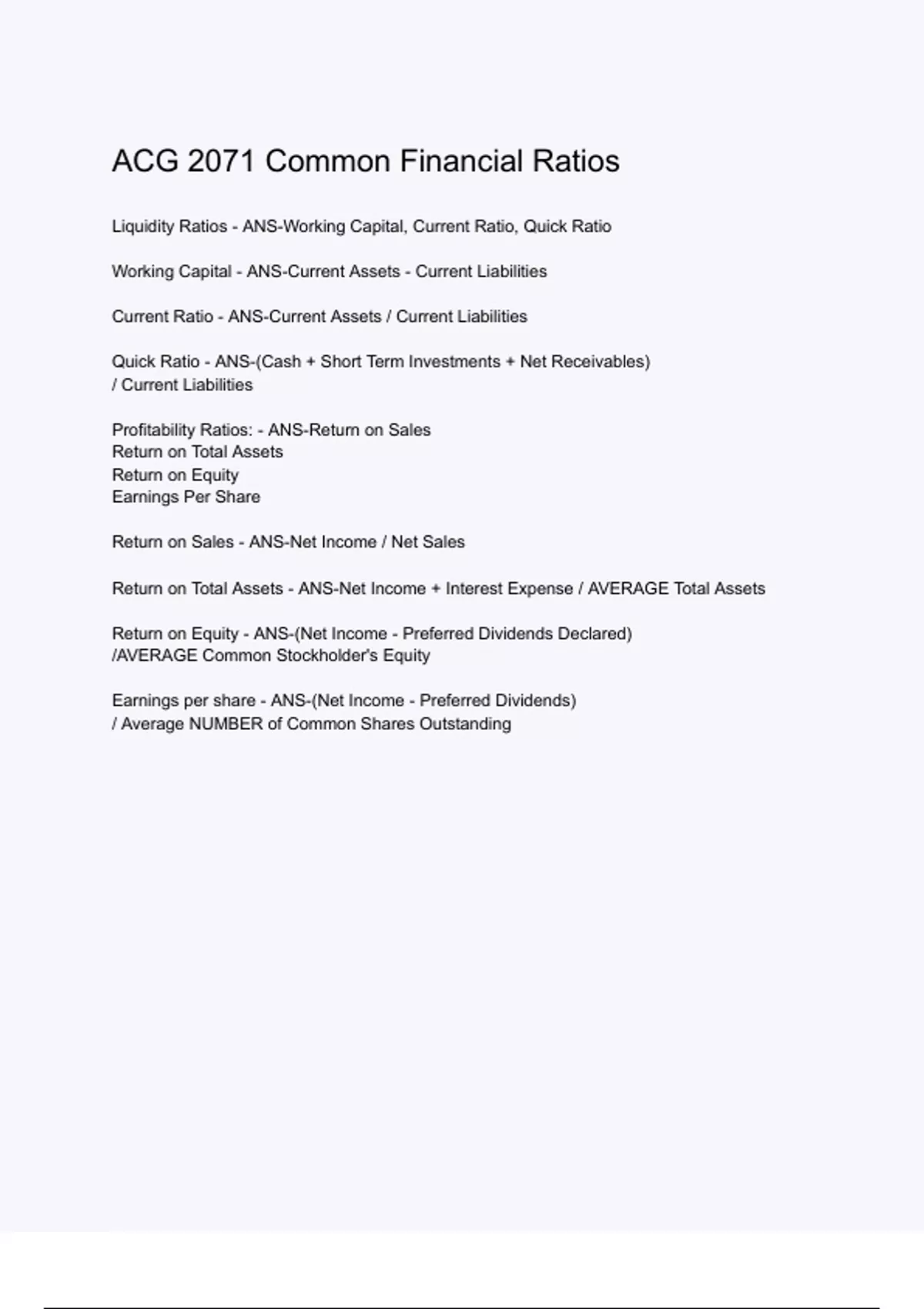 Quick Ratio - ANS-(Cash + Short Term Investments + Net Receivables)