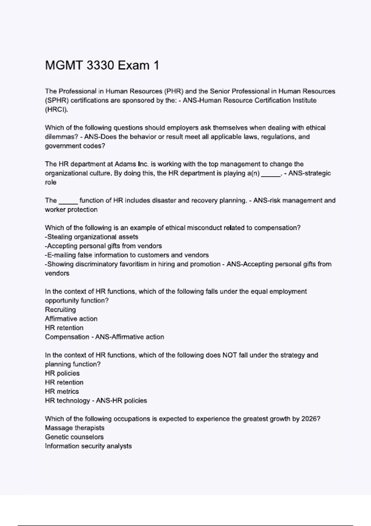 MGMT 3330 Exam 1.