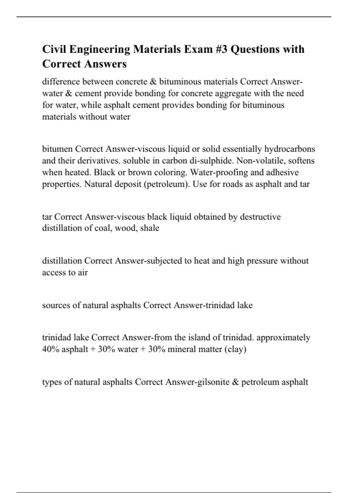 bitumen Correct Answer-viscous liquid or solid essentially hydrocarbons