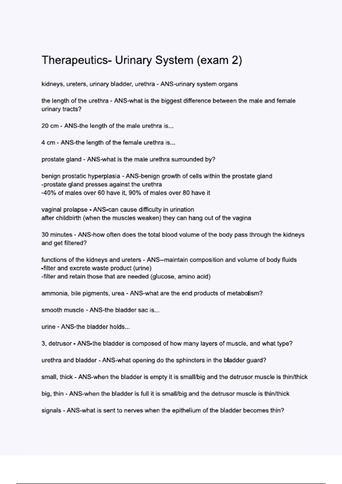 therapeutics urinary system exam 2