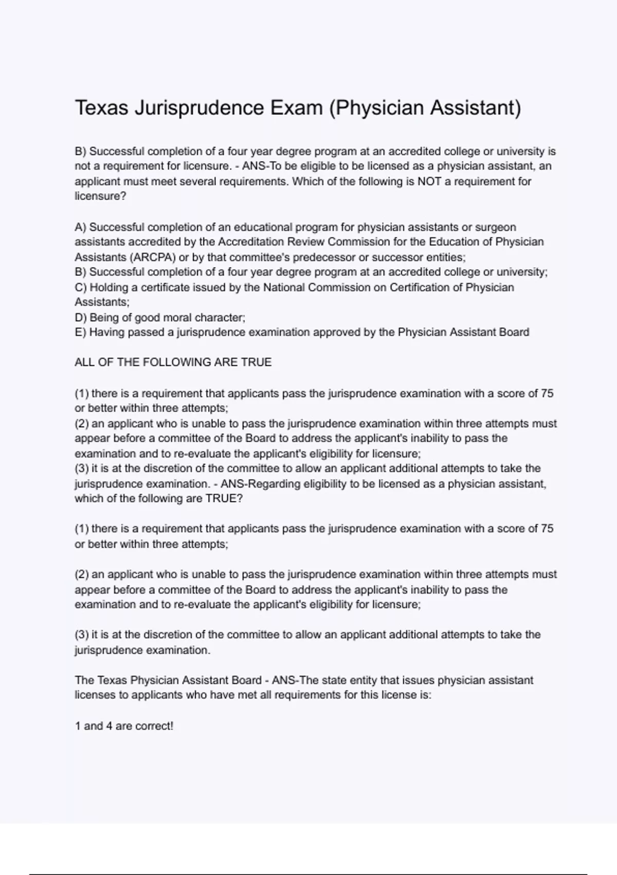 jurisprudence examination. - ANS-Regarding eligibility to be licensed as a physician assistant,