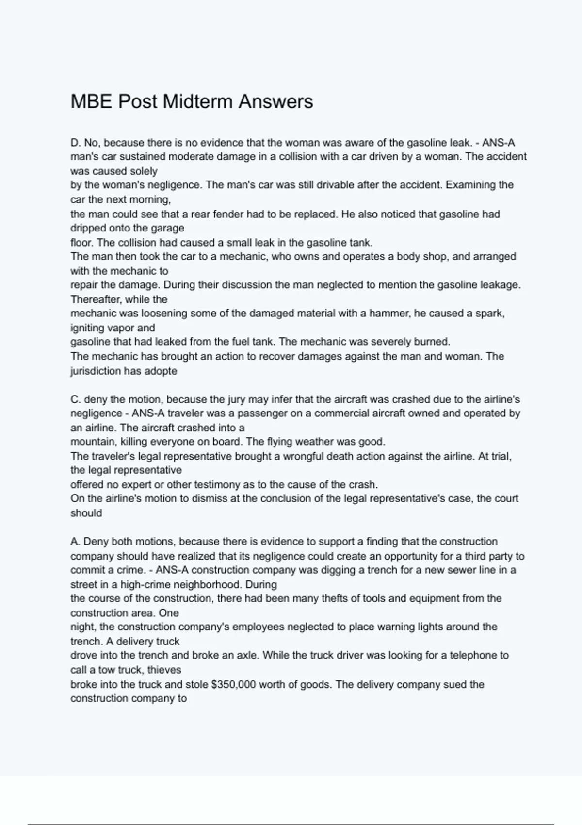 MBE Post Midterm Answers