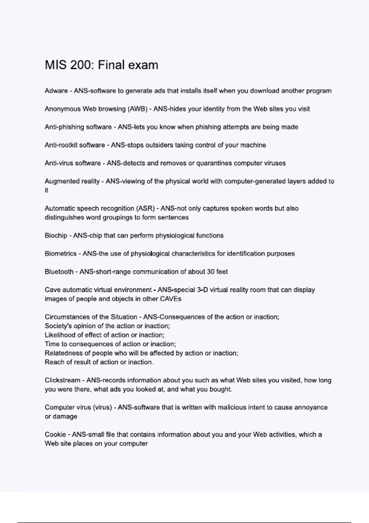 Exam of 5 pages for the course MIS 200 at MIS 200 (MIS 200 Final Exam)