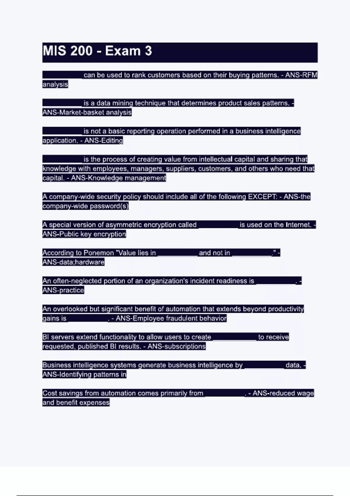 Exam of 5 pages for the course MIS 200 at MIS 200 (MIS 200 - Exam 3.)