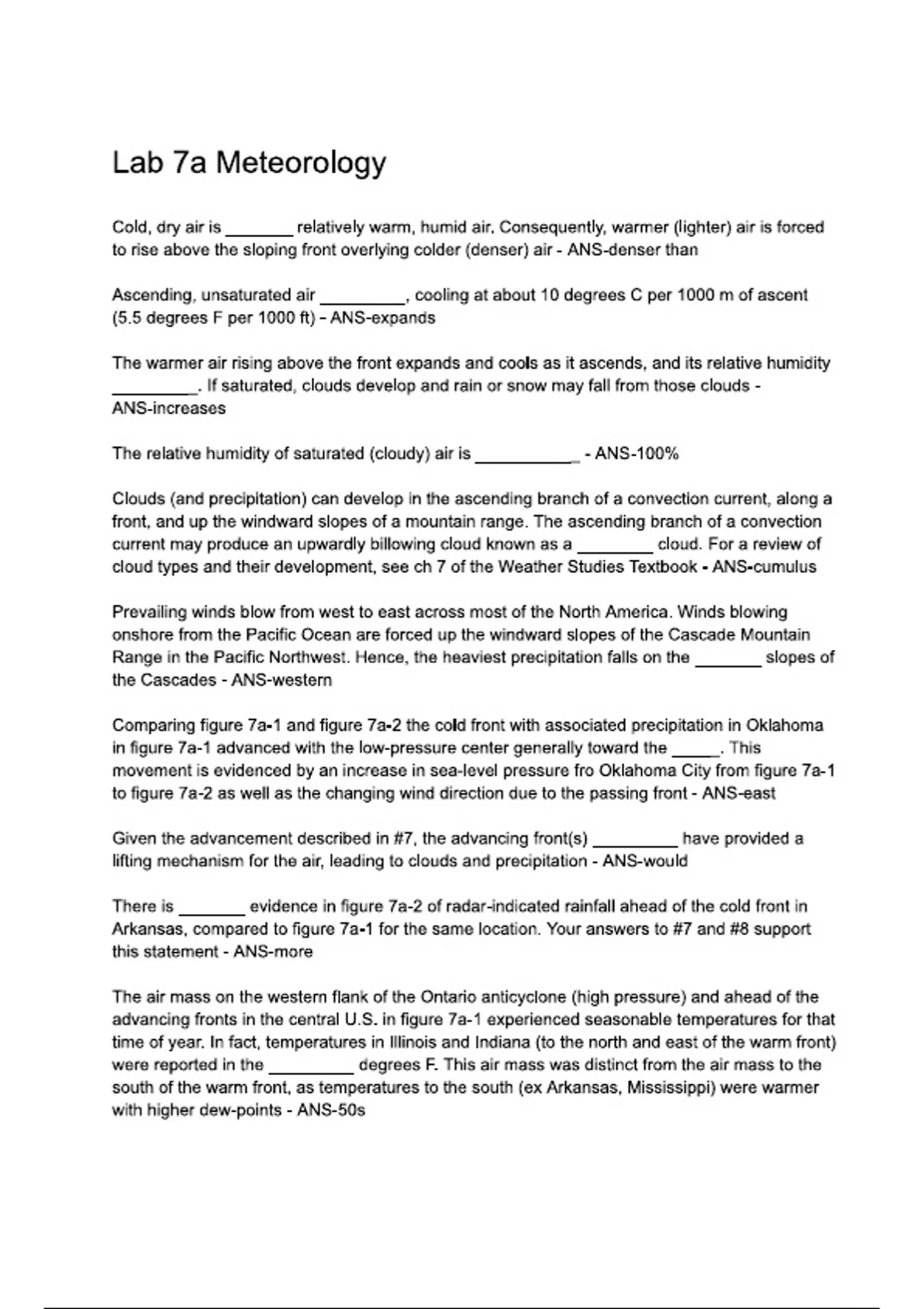 Exam of 2 pages for the course LS 7A at LS 7A (Lab 7a Meteorology.)